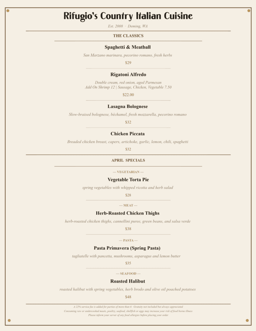 Rifugio's Country Italian Cuisine